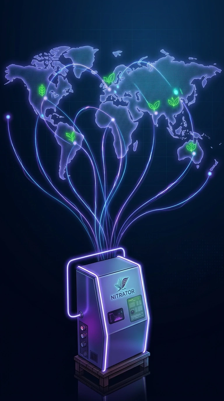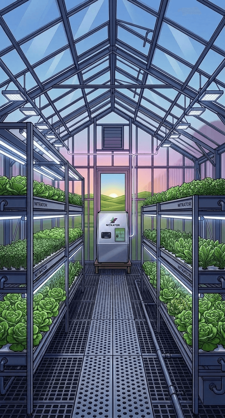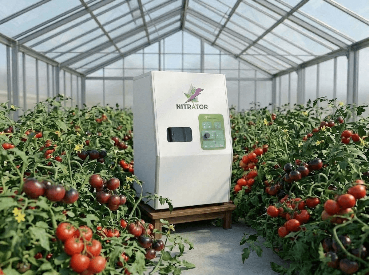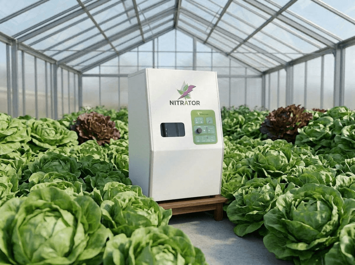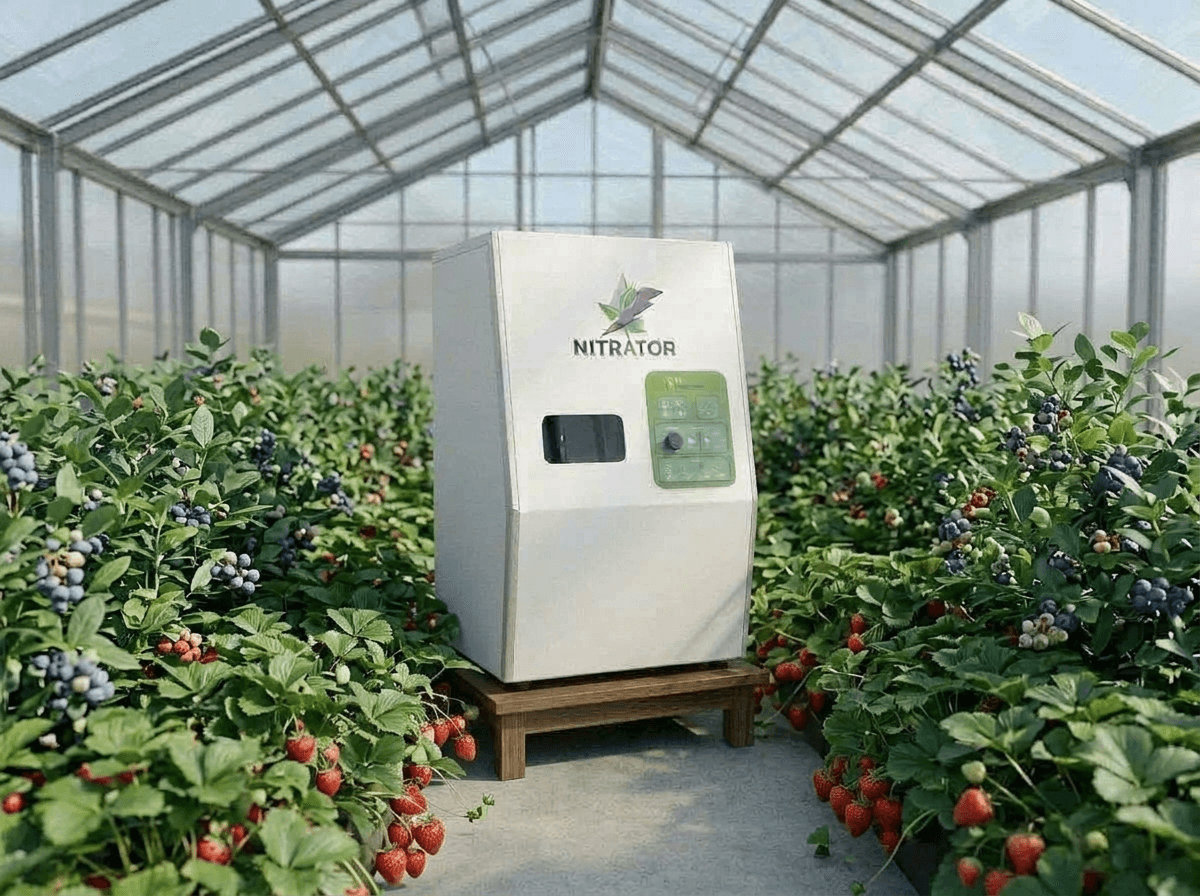 Zero synthetic chemicals. The Nitrator produces pure, bioavailable nitrogen using only air, water, and electricity. No ammonia. No chemical storage. Dramatically lower greenhouse footprint - and zero nutrient runoff contaminating your soil or groundwater.